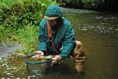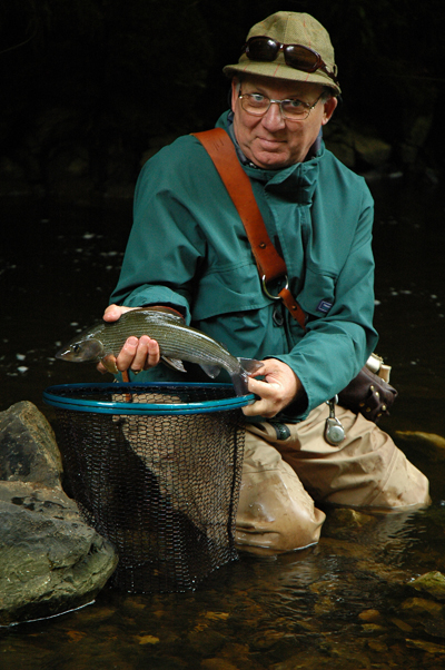 Nymphing , with Glen My 5th outing on the Dove this season, with Glen guiding again, today’s focus being nymph fishing. After all the low water there has been it was great to see that the river had benefited from the recent rain and was running much higher than I have seen it previously and carrying a bit of colour. I set up my rod with a Fulling Mill Tactical Presentation Leader, using the Orange Braid section as the sighter with about 6ft of level leader added (Stroft ABR 0.12mm). A dropper was then added 2ft above the point. The point fly was a heavyish beaded nymph with a smaller and lighter shrimpy looking pattern on the dropper. As we worked our way up the beat from the car park the river certainly looked different than the last time I visited. Confidence was high as we were much less likely to be spooking the fish today as had been the problem during the period of low water. The first few runs saw me get in all sorts of tangles as I tried to cope with the surrounding vegetation and trying to cast the weighted nymphs with no fly line. It always seems to take me a while to start fishing half decently, but with Glen’s guidance things gradually improved. The first fish I caught gave me all sorts of problems as the knot connecting the long level section of the leader to the tapered section kept getting stuck in the top couple of rod rings. After eventually landing the fish the tapered section was removed and we experienced no further problems with knots. It wasn’t too long before we landed the first of several good grayling from a run that a few days ago would have been only inches deep. ![]() More fish followed on a regular basis with the grayling outnumbering the trout quite heavily. However we did manage this trout from the head of Pike Pool, a place I always feel likely to give up a fish or two. ![]() This was a nice trout and had some beautiful bright red spots on it’s adipose fin, very distinctive should I be lucky enough to catch it again. ![]() After working our way upstream we again arrived at the Temple, which is well positioned as a resting place for lunch and a fresh cup of coffee. After lunch we fished the run just above the Temple which has consistently produced fish this season and once again we were not let down with several grayling coming from that short stretch, most of them to the dropper which had out fished the point fly for most of the day. ![]() Whilst fishing this run we were joined by Andy Heath, the river keeper. Andy showed us some of the items he had added to the Temple, replicas of the type of equipment that would have been used in the days of Cotton and Walton. These included a 13’ Wych Elm rod, spliced in two places and breakable in the middle (which is the only thing that makes it different from the rods that Cotton and Walton would have used) There was also a line spinner with samples of horse hair and a horse hair leader. ![]() I tried out the rod, but used a modern leader rather than the horse hair. Unfortunately I didn’t catch anything, which may have been a blessing in disguise. ![]() After our enjoyable short delve into the past it was back to the ‘proper’ fishing and we tried several of the nice runs that Andy has created in the upper part of the beat. Some of the runs have been created by simply breaching a wier, others by infilling with limestone 'chippings' to narrow the channel as well as producing some great spawning beds. ![]() It was in one of these runs that we caught the best fish of the day. A lovely 43cm grayling ... ![]() A nice fish, my best grayling of the year so far, but things may not stay that way for long I hope! Thanks Glen (and Andy), a perfect way end to the day ...... |